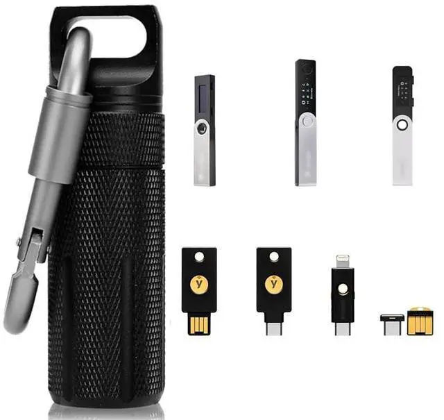 GREAT QUALITY FOR LAST - This YubiKey 5/5C NFC And Ledger Nano X S case features good performance in hardness & durability to make its unbreakable in any bad outdoor occasions, With the 6061 aviation aluminum alloy material and ultra-precision CNC cutting process ^^ GREAT QUALITY FOR LAST - With the 6061 aviation aluminum alloy material and ultra-precision CNC cutting process, this YubiKey 5/5C NFC And Ledger Nano X S case features good performance in hardness & durability to make its unbreakable in any bad outdoor occasions. ^^ ODORLESS & SMELL PROOF - Upgrade silicone O-ring in the upper and lower screw caps, YubiKey 5/5C NFC And Ledger Nano X S case with an excellent airtight feature to prevent odor, water, dust and moisture from entering the containerit screw on and off very well and won't open accidentally ^^ MULTIPURPOSE STASH JAR - Compact size and lightweight, BIU-BOOM YubiKey 5/5C USB And Ledger Nano X S case container comes with carabiner to allow you attach it to your backpack easily, or you can put this portable YubiKey 5/5C NFC And Ledger Nano X S case container into the pocket to carry it with you anywhere.
