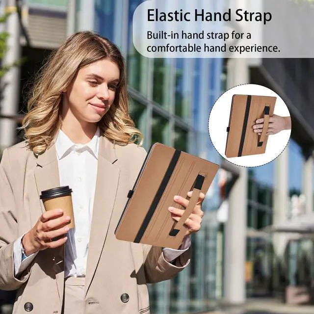 ^^ [MULTIFUNCTIONAL]: Built-in hand strap makes it comfortable to use with one hand. It has a large front pocket for carrying tickets, cards, etc. The pocket is automatically closed by magnetic stickers to prevent the built-in cards from falling out. Multi-angle design is convenient for watching movies and reading materials. Elastic band prevents the tablet case from opening accidentally.
