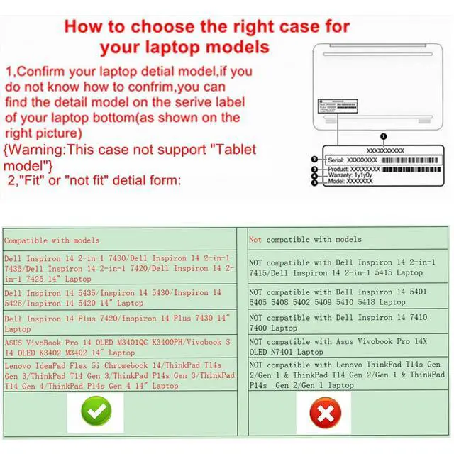 It is especially designed for Dell Inspiron 14 2-in-1 7440 7445 7430 7435, Case for Inspiron 14 5440 5445 5435 5430/Inspiron 14 5425 5420/Inspiron 14 2-in-1 7425 7420/Inspiron 14 Plus 7420 7430 14" Laptop, Case for ASUS VivoBook Pro 14 OLED M3401QC K3400PH/Vivobook S 14 OLED K3402 M3402 14" Laptop, Case for Lenovo IdeaPad Flex 5i Chromebook 14/ThinkPad T14s Gen 3/ThinkPad T14 Gen 3/ThinkPad P14s Gen 3/ThinkPad T14 Gen 4/ThinkPad P14s Gen 4/ThinkPad T14s Gen 4.