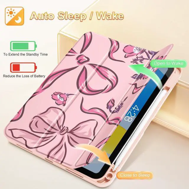 Mektron Case for iPad (A16) 11th Generation 11-inch 2025 Fit iPad 10th Gen 10.9 inch 2022, Tablet Cover with Trifold Stand + Pencil Holder + Auto Wake/Sleep + TPU Back Cover, Flowers-Bows-Pink