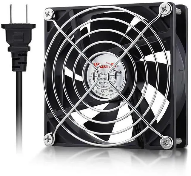 Package include: 1 Piece fan include fan grill and mounting screws & nuts; 2* leadwiresabout 38 inches); 1* Power Plug ^^ Designed for projects that requires cooling or ventilation; or as a replacement fan for various products ^^ Dual-ball bearings have a lifespan of 67, 000 hours and allows the fans to be laid flat or stand upright ^^ Plug not Wired to