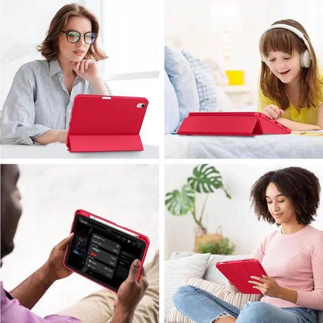 iMieet Case for iPad (A16)/iPad 10th Generation [11-Inch 2025/10.9 Inch 2022], Trifold Stand Smart Cover with Pencil Holder and Soft TPU Back, Supports Touch ID(Red)