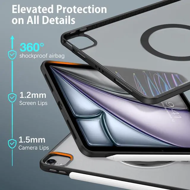 ^^ Rugged Full Protection: BENTOBEN for 11 inch iPad Air 6th gen case is made of high quality flexible TPU and durable hard PC provides a great Protection to your tablet against scratches and accidental drops, bumps, shock. On the inside edges, it has exclusive Shock 360 airbags and strong rubber bumpers on the outside edges for shock absorption if dropped on a hard surface. The internal air pad corners as bumpers are rounded, giving extra room against corner shattering. Ensuring comprehensive protection that keeps your ipad in pristine condition. ^^ Screen and