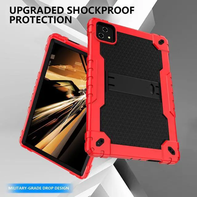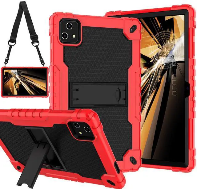 Doemoil Compatible with T-Mobile Revvl Tab 5G 2023 Released 10.36 inch Hybrid Shockproof Protective Kids Firendly Case Hard Shell Built in Kickstand Shoulder Strap for Revvl Tab 5G 2023 (Red+Black)