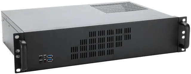 M/B size: Micro-ATX 9.6 x 9.6 / Mini-ITX 6.7 x 6.7 ^^ Drive bay support 1 x 3.25" + 8 x 2.5" ^^ 2 x front access USB 3.0 with USB 2.0 adapter) ^^ 2U rack mount chassis depth=300mm (not contain handle) ^^