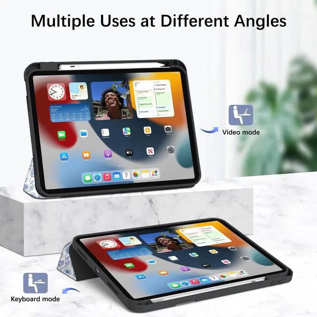 Note: Apple pencils are not included in our product) ^^ [Multi-Angle Stand] - Magnetic tri-fold stand creates a stable viewing and typing mode for iPad. The precise cutout design gives you full access to all features (buttons, speakers, camera, charging port).
