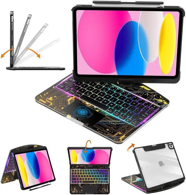 Precise Keyboard Case Fit This keyboard case is specifically designed for the 2025 11-inch iPad (A16 chip) and the 2022 10.9 -inch iPad (A16 chip), providing a smoother user experience for the iPad A16 case keyboard. ^^ iPad A16 Case with Keyboard Stand that Can Rotate 360The bearing hinge design supports 360-degree rotation, allowing you to find the most comfortable viewing angle for your iPad keyboard case from any angle. ^^ Keyboard Case Suitable for Convenient Use in Multiple ScenariosWhether working from home, studying on campus, or traveling outdoors, this keyboard case for iPad A16 can be used seamlessly.