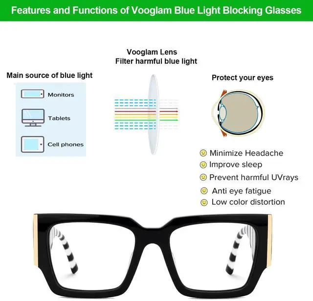 Range: 2.13 " ~ 3.07" /(54~78 mm)Product instruction: (1) Why do we need to filter blue light? Blue light from our computers, phones, tablets, and other electronic products causes our eyes to not only work harder but puts them at risk of aging faster. By wearing blue light blocking glasses, you can limit the amount of blue light that enters your eyes and make your screen time more pleasant. Reduce eye strain, eye fatigue, and sensitivity to light during computer terms or any other digital time. Protect Your Eyes from macular degeneration and early vision loss, more concentrate on working and learning. Vooglam glasses are specially designed to filter out harmful blue light. Reduce the symptoms of digital eyestrainEyestrain, Headaches, sore or tired eyes, and stiff necks are all symptoms of digital eyestrain. Voogueme blue light blocking glasses make screen time more comfortable and help eliminate symptoms of digital eyestrain.