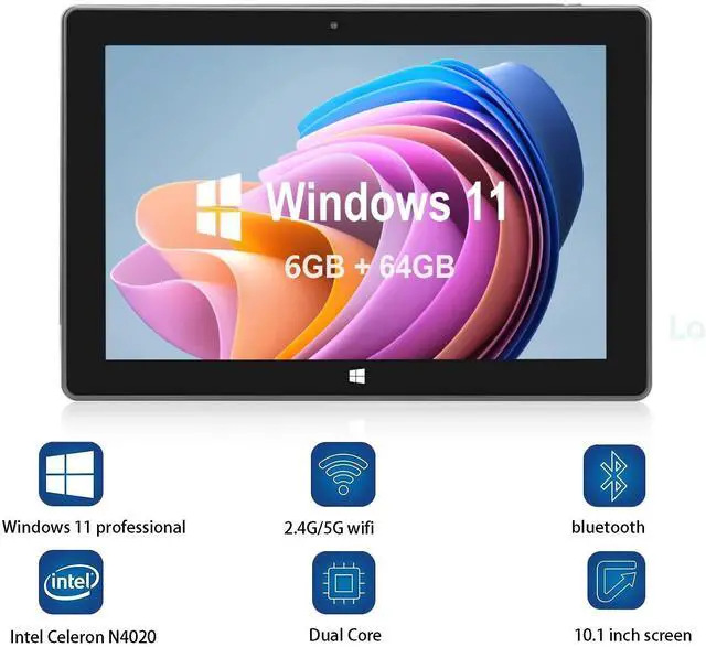 Full high definition 10 Inch tablet display with a 1280 800 native resolution, which allows you to play Full high definition content with ease. The touchscreen will be able to take full advantage of the 10 touch gestures incorporated into Windows 11. ^^ High performance Intel Processor, Intel Celeron Processor frequency up to 2.8 GHz, provides stable and efficient performance. Pre-installed latest Windows 11 system built-in Intel uhd graphics 600 ensures fast sharp image processing. ^^ Tablet with 6gb of Ram64gb of flash storage, Hdmi Output High Performance, The tablet windows 11 system is powered by a Dual-core 1.6 GHz processor.