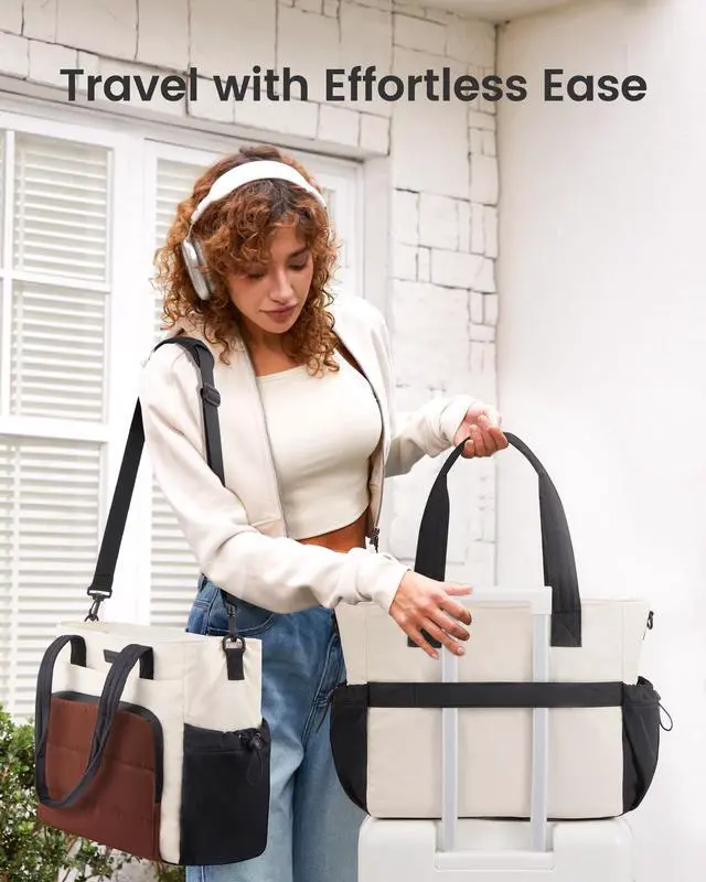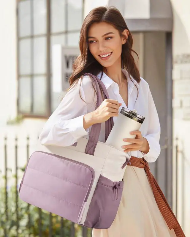 DaySwitch up your style: use the extra-long top handles for a sleek look, attach the detachable strap for hands-free comfort, or slide it over luggage with the back sleeve. Perfect for work, travel, and weekends. ^^ Tough Yet Totally WashableCrafted with lightweight LOVEVOOK composite fabric, this bag resists scratches, shrugs off stains, and stays in shapeeven after countless machine washes. Looks new, trip after trip. ^^ Style Meets FunctionFrom the office to the gym to a weekend getaway, this sleek puffer tote blends modern style with everyday function. A perfect gift for professionals, moms, and travelers!