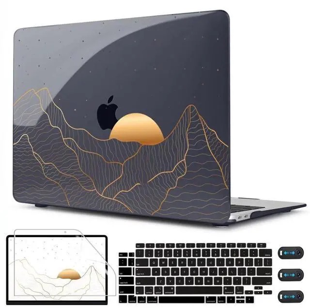 CISSOOK Compatible with MacBook Air 13 Inch M1 Case 2022 2021-2018 Release A2337 A2179 A1932, Crystal Black Plastic Hard Shell Case Cover for MacBook Air 13" with Touch ID, Sun & Mountain