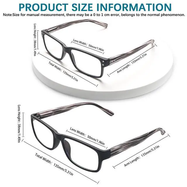 ^^ [Materials]: High quality plastic frames, durable, flexible, lightweight; Anti-reflective clear HD lens and accurate magnification strength can reduce chromatic aberration. Casual frame design keeps you looking professional and stylish while working or playing video games.