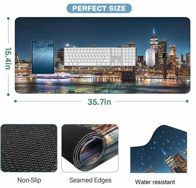 Y YIHANGBEST The Skyline of New York City Desk Mouse Pad Mat United States Extended Gaming Keyboard Mousepad for Computer,Home,Office 35.4"X15.7"