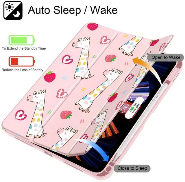 Lepeoac Case for iPad Air 11'' (M3 2025/M2 2024) 6th Gen/iPad Air 10.9'' 2022 2020 Air 5th /4th Gen, Buit in Pencil Holder with Clear Transparent Back Cover Auto Wake/Sleep, Giraffe-Strawberry-Pink