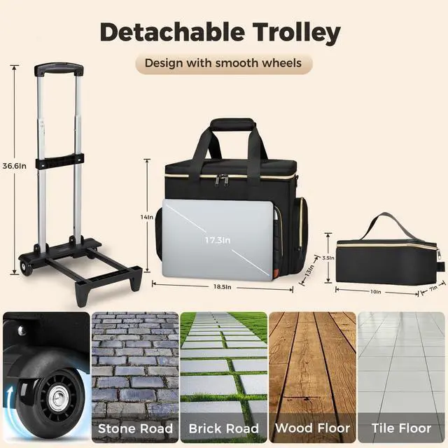 Included Lunch Bag: This rolling laptop bag women comes with a insulated lunch bag (10" L x 7" W x 3.5" H), allowing you to bring your own meals on the go. The lunch bag's premium insulated material maintains food temperature for extended periods, ensuring you can enjoy fresh food or cold drinks anytime during your busy schedule or long workday ^^ Detachable Trolley & 2