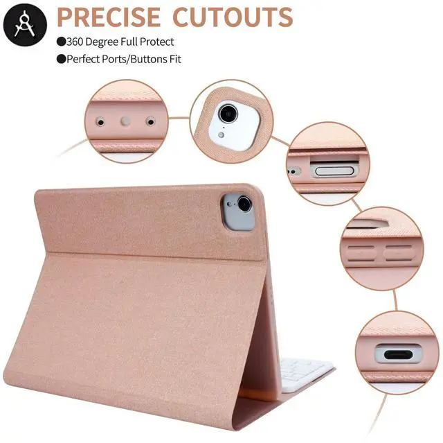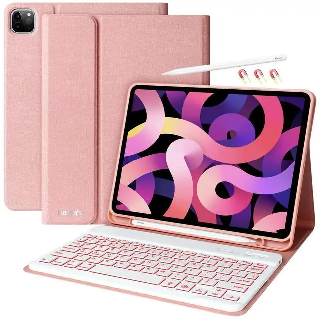 Shockproof Protective Cover: Built-in premium Li-ion battery with energy-saving mode, 2-3 hours full charge, work for at least 80 hours, stand by for 30 days. Optional backlight mode and 7 vibrant colors for IPad air 5th 4th keyboard makes typing fun and easy in the dark. Scissors mechanical keyboard feels quiet and smooth. You can read, browse and work freely anytime, anywhere. ^^ Adjustable Viewing Angles & Pencil Holder Keyboard Case for ipad pro 11 inch /ipad air 10.9 supports 3 viewing angles with built-in anti-slip slots. Easily adjust to whatever comfortable angle works best for you. Back support keeps your iPad very stable, perfect for working, writing or watching videos at work, school, travel and home. Built-in Pencil Holder keeps your Apple Pencil in easy reach PEN NOT INCLUDED). That is nice protection for Apple Pencil when not in use or charging it. ^^ Ultimate Protection and Advanced Heat ReleaseKeyboard Case for ipad air 10.9 /ipad pro 11 inch has full edge coverage and offers 360 full protection against scratches, bumps, or dents, protecting your tablet from all sorts of dropping accidents.