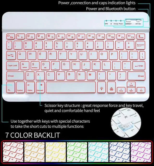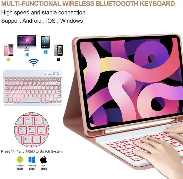^^ Detachable Wireless Keyboard: iPad Air 10.9 5th/4th/iPad Pro 11 inch case comes with a magnetic detachable Bluetooth Keyboardthe Bluetooth keyboard connects quickly and has a stable connection, which is very convenient when you are on the go. It can also be used as a separate keyboard that connects to other devices (Windows, IOS, Android supported) via Bluetooth. The ABS ice crystal keys on the keyboard are quiet and smooth, providing you with a comfortable typing experience. ^^ Ipad pro 11 inch case Colorful Backlit Keyboard & Hybrid