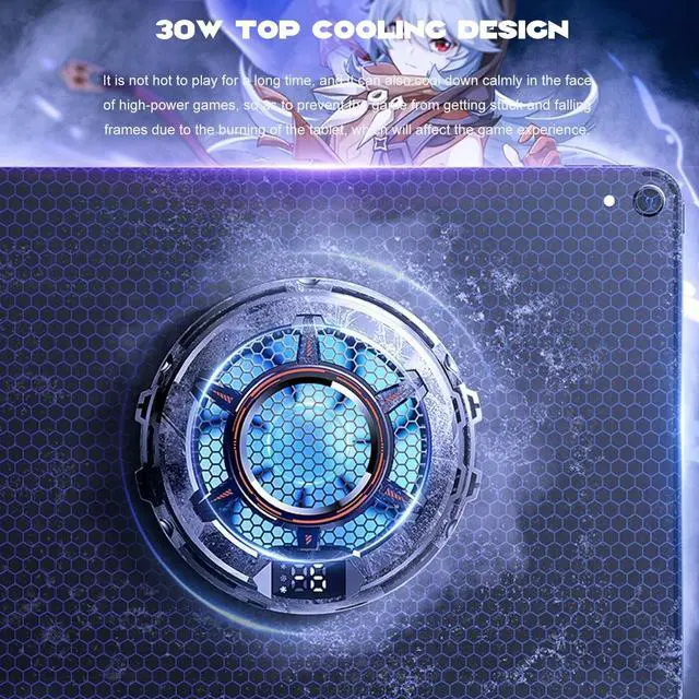 Product Introduction: The CX05 semiconductor radiator supports up to 30W operating power and a minimum temperature of-9 degrees Celsius. It is equipped with a powerful magnetic function and is compatible with tablets of all sizes. 3 adjustable temperature levels, selecting appropriate levels based on game type and phone heat, creating a long-lasting and smooth gaming environmentHigh conductivity, large area cooling, 7-blade silent large fan, 360 circular heat dissipation and air outlet, greatly improving thermal conductivity power and better cooling effectFine structure design, using TEC semiconductor refrigeration chip, directly hit the phone to burn the face, reasonable and healthy cooling, without hurting the phoneSix core technologies: 1.30W high-power refrigeration2. Scientific cooling, adjustable temperature in three levels3. High speed, high wind speed4. Multi size compatibility, two installation methods (magnetic suction/back clamp) 5.40 x40 TEC Superconductor Chip6. Semiconductor ice sealed cooling surfaceProduct specifications: Product