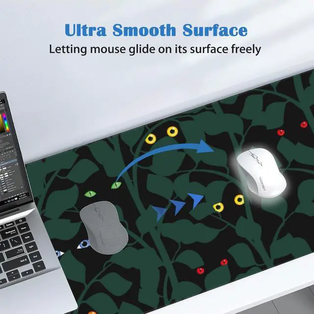 Large Mouse PadThe desk mouse pad measures 31.5 x 15.7 inch, with 2 mm thickness, big enough to accommodate your computer, laptop, keyboard and other desk items, and still leave plenty of space for your mouse to move all around. ^^ High qulity Workmanship and MaterialsThe mouse pad has delicate stitched edges, it is individually hand crafted with high quality warkmanship so not fray, deformation and degumming in prolonged use, relax to use. The computer mouse pad is thick and feels soft in the hand, which will provide comfortable support while typing, reading, writing and even sleepping.