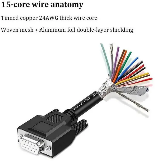 Easy to UsePlug and play without any driver installed, Very simple and fast connection. ^^ Anti-interference This product uses 24AWG tinned copper thick wire core and double-layer shielded cable, with good shielding effect. ^^ Stable TransmissionVGA HDB15 serial cable adopt 15 Pin gold-plated connecter, high speed transmission, good contact, stable signal transmission. ^^ DurableThe cable sheath adopts multiple stranded wire cores and PVC plastic sheath, which is resistant to bending and stretching. ^^ Wide ApplicationSuitable for DB15 serial port adapters, such as computers and tax control computers, digital cameras, PLCS, PDAS, MODEMS, set-top boxes, barcode machines, industrial instruments and other communication equipment.