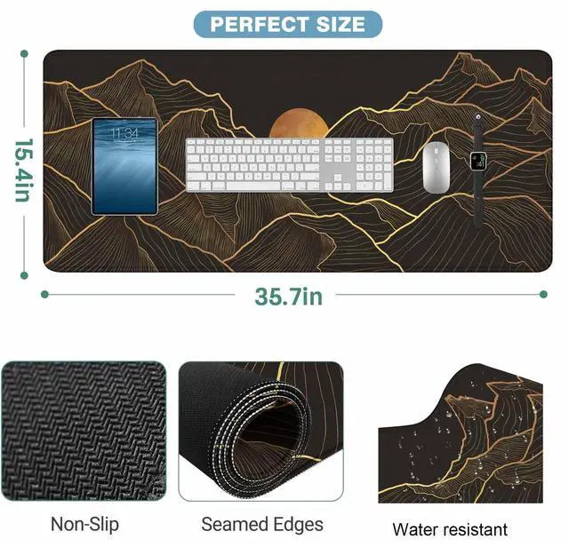 • 35.4"x15.7"x0.11" Extended Size Desk Mat :Large mouse pad design makes it provide plenty of room to place your mouse,keyboard and other desk items.protecting your desk while you playing games or working.