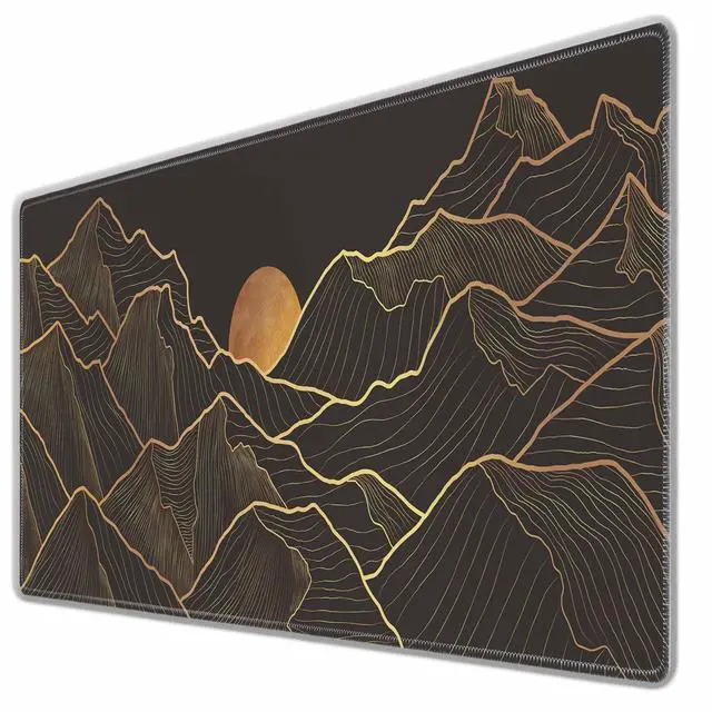 Y YIHANGBEST Mountain Line Art Mouse Pad for Desk Golden Minimalist Mountain Range Sunset Large Gaming Mousepad for Home,Office,Computer,Keyboard Mat 35.4"X15.7"