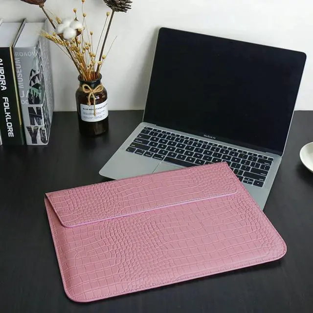 Seanai Crocodile Grain PU Leather Flap Style Laptop Bag Sleeve Cover CaseCompatible for MacBook Air 13.6 inch with Retina Display and Touch ID 2025 2024 2023 2022