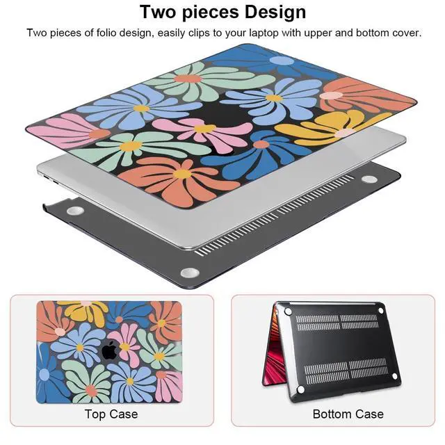 Protection: This macbook pro 13 A2289 case 2020 only 0.6 lb, you'll feel your macbook pro 13 a2338 more natural in handthe. hard shell macbook pro 13 inch m2 cover with two pieces snap on design, easy to put on and snap off. prevent your devices from unwanted cracks, scratches or damages. ^^ Unique 3D UV Painting, Slick hard shell cover with Crystal Black Printing finish to resist scratches and skidding. This macbook pro 13 inch M2 Case 2022 allows full access to all ports, fully open over 135 degrees. ^^ Fully vented for safe heat disbursement. The two rows vent slots at the bottom of the case can easily keep your macbook pro 13 2022 M1 device cool. The four raised rubber feet keep your laptop stable and safe. ^^ What you get - 1 printed pattern top case, 1 crystal transparent bottom case, 2 matching color silicone keyboard cover, 1 HD screen protector, 1 plastic webcam cover, and 1 cleaning brush.