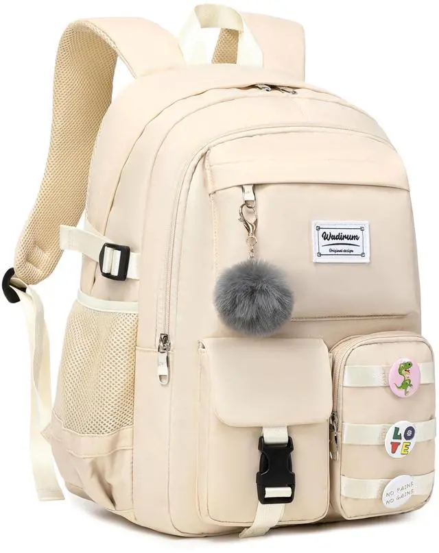 Backpack size: 12.2 *6* 18.5 inches (Length*width*height), weight: 1.5LB. Interior laptop sleeve offers secure storage designed to fit most 15.6 laptops. Adjustable shoulder straps with mesh cushioning and fully padded back panel for personalized comfort. ^^ Featuring a pure color and fashion design, this student backpack adds classic style to your everyday look. This backpack is very suit for school routine, daily use or short trip. ^^ Three fashion front pockets for organizing easily for small items. Back have an luggage strap when your on travel can hang backpack on luggage box.