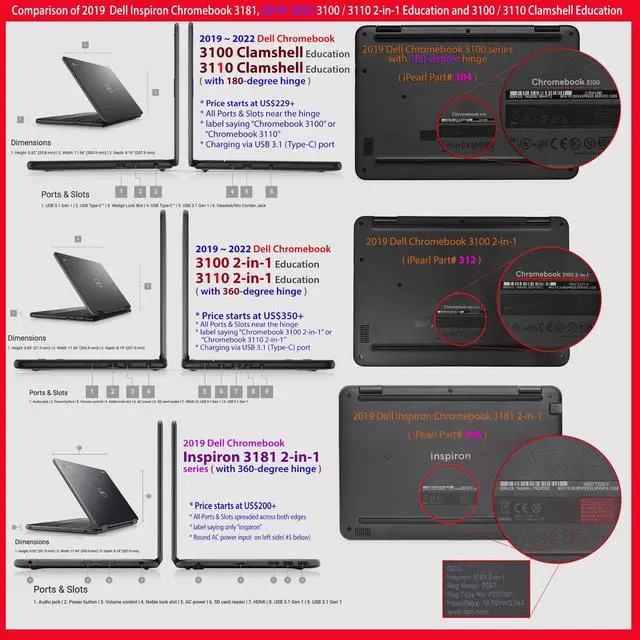 NOTE: Before placing order, PLEASE make sure to verify your laptop model number as this case is MODEL specific and NOT interchangeable. ^^ NOT fitting other 11.6 -inch Dell laptops. NOT compatible with ANY other laptops as well. ^^ Made of high-quality translucent polycarbonate material which is shatter-proof and will protect your 2019~2022 11.6" Dell Chromebook 3100 / 3110 2-in-1 Education series ( with 360 hinge) Laptop Computers all around ^^ Designed to perfectly fit the 2019~2022 11.6" Dell Chromebook 3100 / 3110 2-in-1 Education series ( with 360 hinge) Laptop Computers with dimension of 11.96 x 8.19 x 0.85 inch ( 303.9 x 207.9 x 21.5 mm ) ^^ 2-piece light-weight ( 8.7 oz or 246 g ) shell easily snaps on and off.