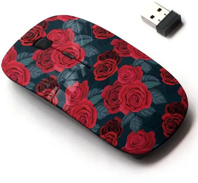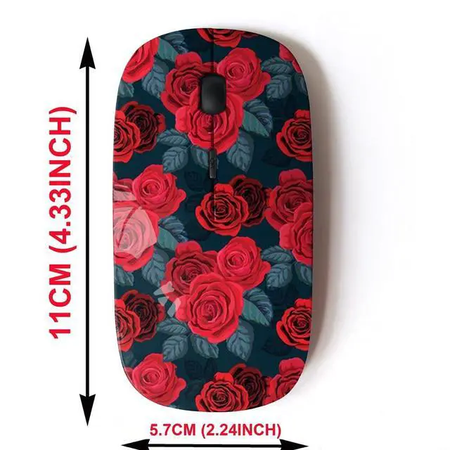 CJCBROES 2.4G Wireless Mouse with Cute Pattern Design for All Laptops and Desktops with Nano Receiver - red Rose seamlees Retro