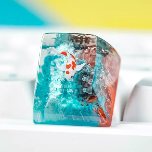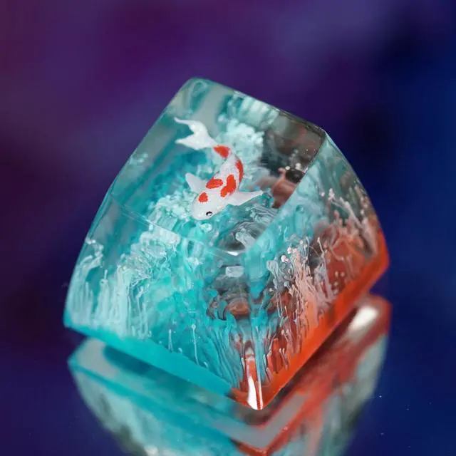 Kohaku Koi Artisan Keycap Blue and Red Coral Reef R1 SA Profile Custom Keycaps 1U ESC Handmade Gaming Resin Key Cap Cherry MX Switch Compatible Mechanical Keyboard Koi Lover Gift