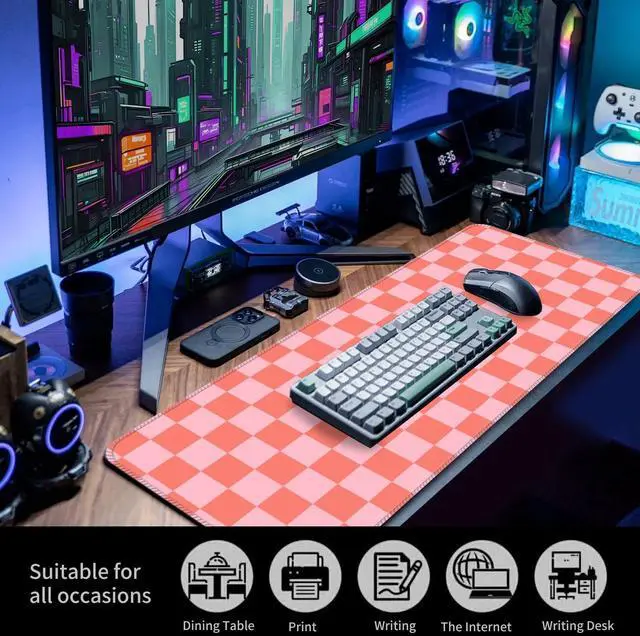 Ample Space for Gaming and WorkUpgrade your desk setup with this Large Gaming Mouse Pad ( 31.5 x 11.8 inches), designed to provide ample room for your gaming mouse, full-size keyboard, and other desk essentials. This big mouse pad offers plenty of space, allowing you to move your mouse freely, whether you're in the middle of an intense gaming session or working on tasks that require precise mouse control. Its generous size makes it the perfect desk mouse pad for those who want to keep their workspace organized while ensuring efficient use of their desk space.