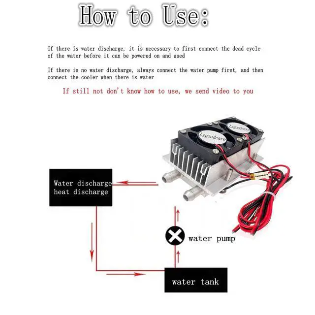 Lsgoodcare 120W Semiconductor Refrigeration Cooler Kit DIY Peltier Cooler 12V TEC1-12706 Peltier Heatsink Module kit Thermoelectric Cooler Peltier Cooling System for DIY Car Electronic RefrigeratorLsgoodcare 120W Semiconductor Refrigeration Cooler Module Kit, Water Cooling System for DIY Small Refrigerators and Air Conditioners (Not for Water Supply Refrigeration) 1. Great DIY peltier kit for small space cooling in hot summer, used for plate cooling, test bench, pet bed cooling, such as chicken, little dog. 2. Save space, small size can be use in anywhere, well made compact structure DIY peltier cooler kit, easy to use, long term use.