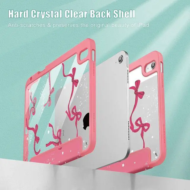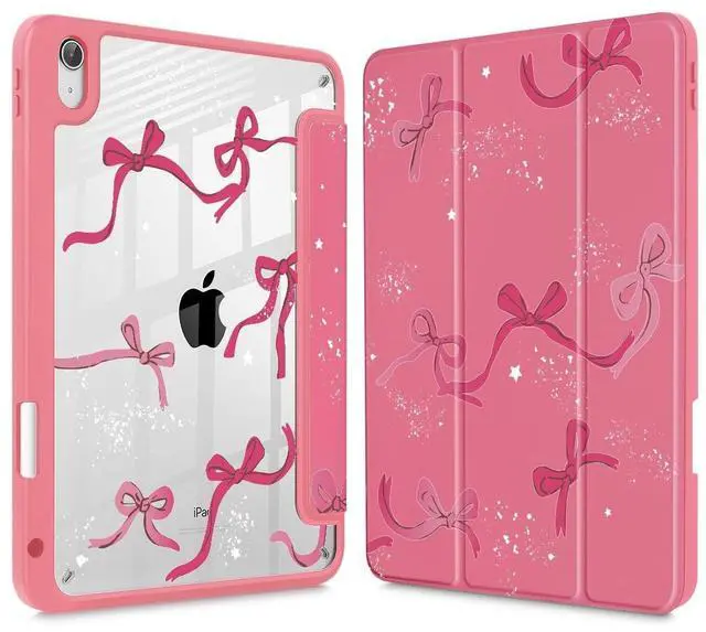 Tuiklol Case for iPad Air 13 (M3 2025 / M2 2024), Buit in Pencil Holder with TPU Protection Shockproof Cover Clear Transparent Back Trifold Stand-Auto Wake/Sleep Tablet Case, Bow-Watermelon Red