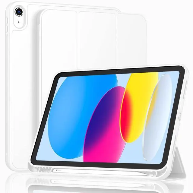 ToaPoia Case for iPad (A16) 11 Inch 2025/iPad 10th Generation 10.9 Inch 2022, Slim Trifold Stand Protective Cover with Pencil Holder and Soft TPU Back,Support Auto Sleep/Wake (White)