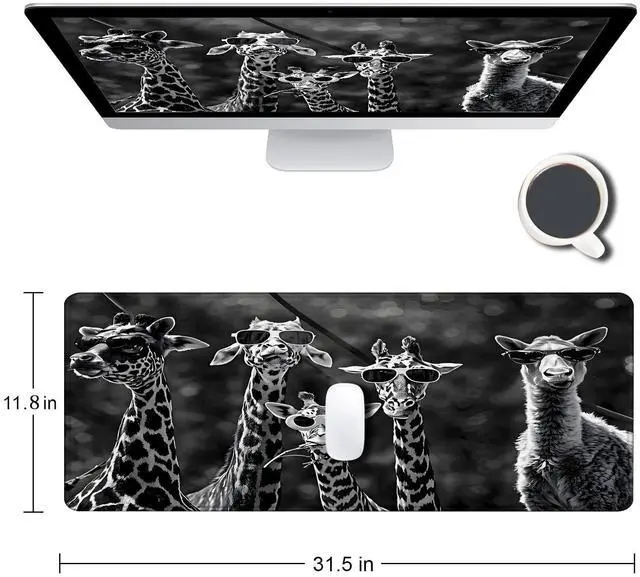 Large Gaming Mouse pad,Black and White Funny Giraffe Family Anti Slip Rubber Base Mouse pad, Suitable for Computer, Laptop, Office Desk Accessories