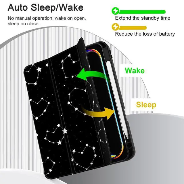 Released Characteristic: 1. The case is made of premium PU exterior, microfiber lining and soft TPU back cover 2. Case automatically wakes your tablet when opened and puts it to sleep when closed 3. You can easily fold the cover into different positions to create a stand for reading, viewing, typing, or making FaceTime calls 4. Built-in pencil holder, grab your tablet pencil effortlessly whenever you want, easily carry your tablet pencil with your device 5. Easy to Installation and remove 6. Convenient to use all the controls and features
