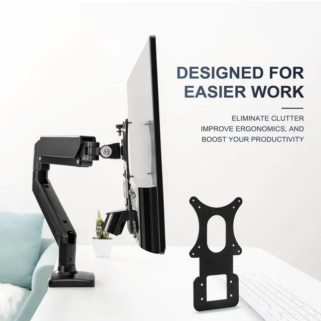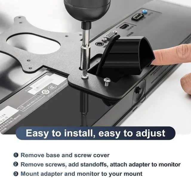 Compatible with LG 24MP58VQ, 24MP58VQ-P, 24MP59HT, 24MP59HT-P and 24MP60VQ Not compatible with other displays ^^ Compatible with LG series monitors can be securely mounted to a VESA-compatible stand, arm, or desktop stand for a personalized, ergonomic setup. ^^ Upgrade your workspace today with our VESA Mount Adapter Bracket and enhance your viewing experience with unparalleled versatility and convenience! Elevate your monitor setup to new heights with this essential accessory ^^ Materials High-quality metal Durable construction ensures long-lasting performance and reliability. Easy Installation Compatible with a wide range of mounting options, the display can be easily integrated into different work environments ^^ You'll need a screwdriver to get you set up with this VESA adapter for compatible with LG monitors in minutes.