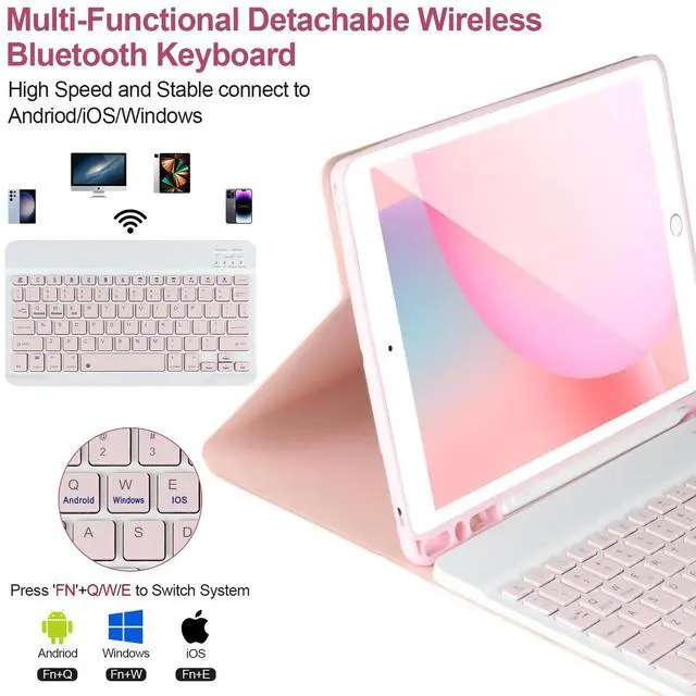 Number: A1701/A1709). Please check your iPad model before purchasing! ^^ Detachable Wireless Bluetooth Keyboard for iPad 10.2 inchAfter this keyboard is connected to your iPad 9/8/7th generation via Bluetooth once, it will automatically connect after subsequent use, turning your iPad into a laptop in seconds! It supports carrying around, which is convenient for entertainment and office. The scissor-style mechanical keyboard feels quiet and smooth, providing you with a comfortable typing experience. ^^ Powerful Battery &Built-in Pencil HolderBuilt-in Strong battery with energy-saving mode, it only takes 2-3 hours to fully charge, work at least 80 hours and stand by for 30+ days. The inner layer of the case is padded with a honeycomb grid, which releases 80% more heat than other iPad cases, preventing overheating to prolong the life of your iPad 9/8/7th Gen, iPad Air 3rd, iPad Pro 10.5 '' Tablet. Built-in Apple Pencil holder, cap and adapter slot, grab your Apple Pencil for easy portability and use. ^^ Multiple angles Stand &Magnetic CaseThis iPad 9th generation case with keyboard adopts clamshell magnet detachment design, can support three different angles of standing, providing