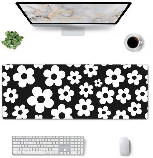 CANFLASHION White Blossoms on Black Large Desk Mat,31.5"x11.8" Non-Slip Waterproof Computer Mouse Pad,Washable Fabric Surface with Rubber Base for Office & Home Use,Extended Keyboard Mat(300x800x3mm)