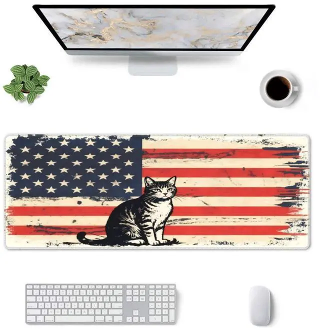 CANFLASHION American Flag Mouse Pad,Office Desk Mat 31.5"11.8",Large Gaming Mouse Pad with Cat Design, XL Extended Waterproof Desk Pad for Computer with Non-Slip Rubber Base300 * 800 * 3mm