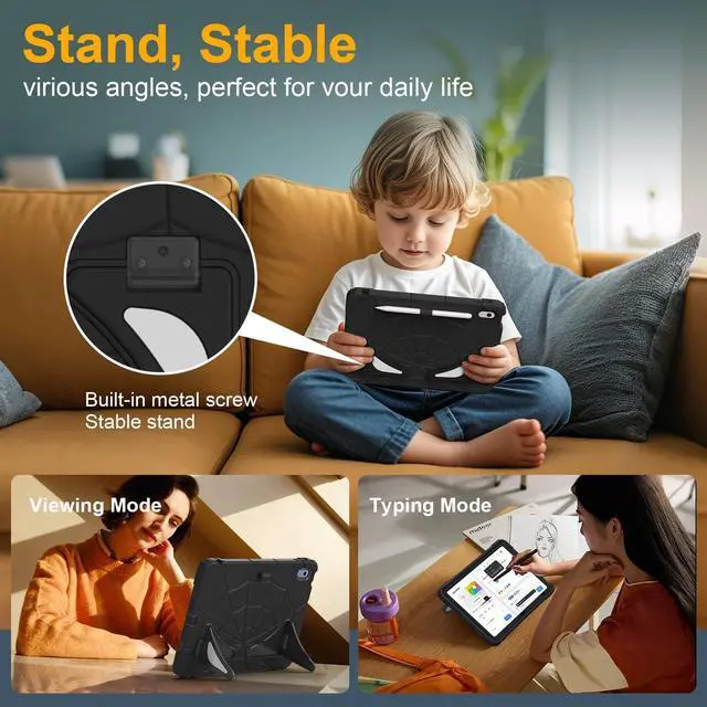 • Function Stand: Auorld Case for ipad a16 case comes with a fun eye shaped stand that supports 60 and 30 viewing and can be easily kicked out as a hands-free stand, allowing your child to enjoy their videos, games, or sketches in the comfortable viewing position