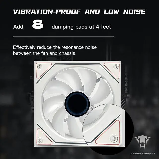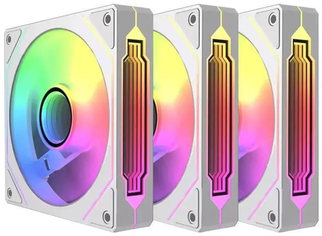Three sided Infinite Mirror ARGB light effect The side infinity mirrors on the left and right sides of the fan are based on infinite geometry Multiple layers 0.5 mm apart are visible in the circular infinity mirror at the center of the fan ^^ Support +5V 3 PIN ARGB motherboard divine light synchronization ^^ High wind and low noise fan blades Balanced 9 blade design, increase the output wind pressure Improve the efficiency of heat dissipation, easily blow away the excess heat of the host, 1000~1650RPM; 29DBA ^^ Hydraulic bearing Ensure high speed operation, reduce wear, reduce noise, improve service life The bottom of the fan has a magnetic suction, which attracts the steel column on the fan page and has a strong suction force ^^ Double-sided shock pad The silicone cushioning pad can effectively reduce the noise caused by resonance when installed on the chassis ^^