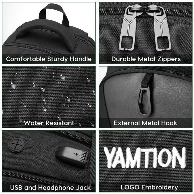 eatures: TSA FreindlyLarge CapacityLuggage StrapMetal hook on the frontThe logo is embroideredMade from waterproof polyesterUSB and Headphone PortWhat's in the