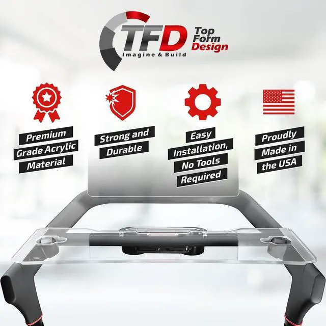 Low Maintenance: Durable and hygienic! Constructed with a heavy-duty acrylic for durability and breezy cleaning, The Tread Tray is engineered to outlast other accessories and won't harbor stains, sweat, or odor. Just wipe down after use and store the tray on your Tread or in another secure location until your next workout ^^ Made In USA ^^ Cause, Its