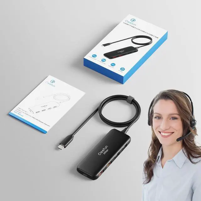 Data Transfer: Qeefun 5 in 1 USB C hub is equipped with 2 USB A 3.2 Data and 2 USB C 3.2 Data ports and 1 PD Charging port. The USB 3.2 Hub supports a max file transfer speed of 10Gbps. That's fast enough to transfer a 10 GB file in just 8.2 seconds. ^^ 100W