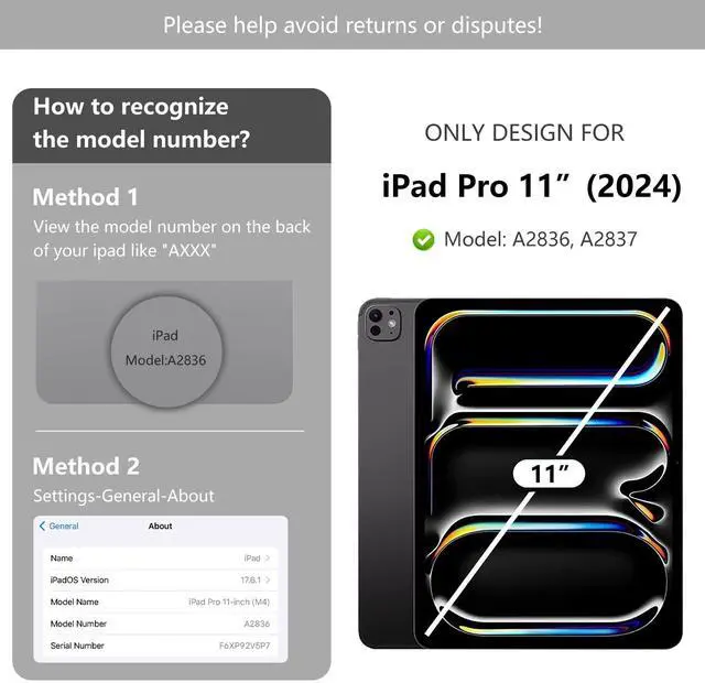 Exclusive Fit: Precision-engineered for iPad Pro 11" 2024 (M4/A2836/A2837) only.