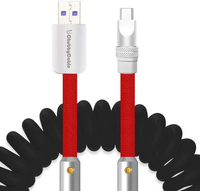 chubbycable Curly Colorblock Chubby 120W Coiled USB C Cable Braided Silicone Retractable Fast Charging Cable Compatible with iPhone 17-15 Series, Black+Red, USB-A to Type-C, 2.29FT-3.6FT