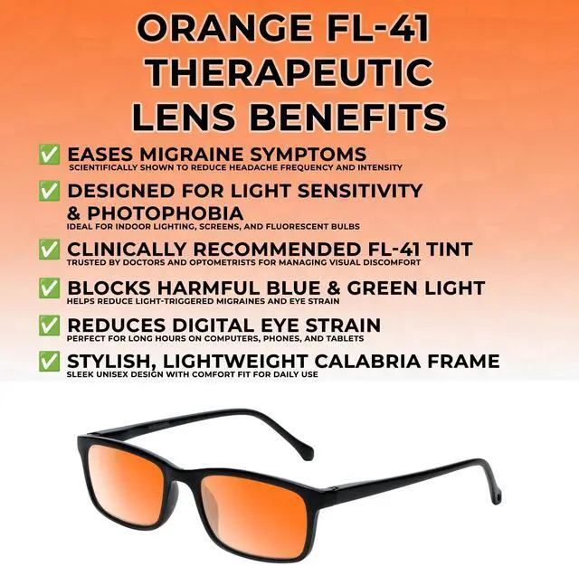 FL-41 Rusty Rose Pink Lenses: Block flickering blue light to help alleviate migraines and eye strain, providing a soothing effect for indoor lighting & sensitive settings. Winter Sun Light Golden Yellow Lenses: Brighten your day with improved contrast & energy levels. Practical for outdoor activities under low light.